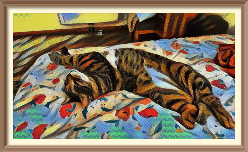 The artsy-fartsy version of this one uses just one filter - Picasso, at 68%. It makes Me look much more like a tabby, doesn't it? And just look at my snaky-looking tail!